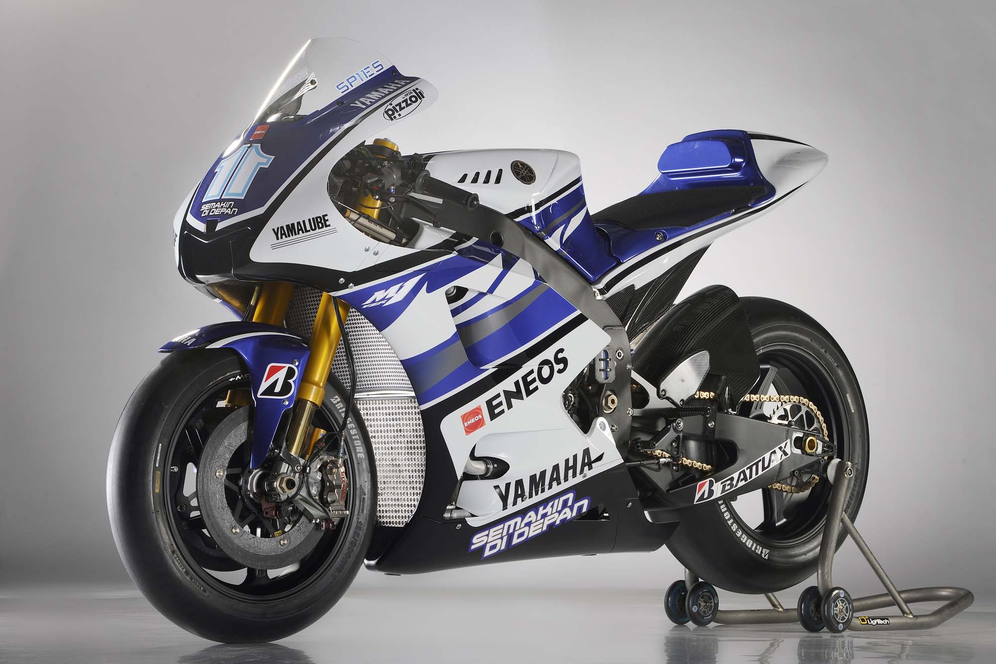 Orangenya ENEOS??? Nop bro, Yamaha MotoGP Factory team 2012 tetep pake warna kebesarannya, biru putih, tapi untuk edisi tahun ini lebih banyak putihnya, kenapa ya?? Ada yang bisa kasih komen :D?