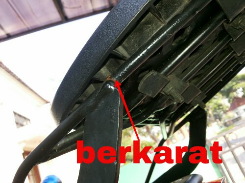 Balik lagi ke masalah karat bin patah ini, MR tidak habis pikir, masa bracket baru umur 5 bulan dan harga 250 ribu sudah seperti ini, dan kalau MR perhatikan lagi memang agak miring posisinya alias tidak sama antara kanan dan kiri hmmmmm…..