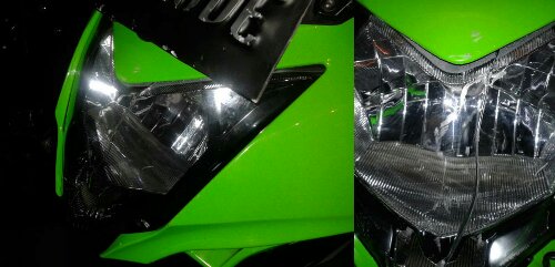 Paling parah ya di footstep kiri, sampai patah lho!! Ga kebayang seberapa kencengnya ini motor di tesnya, padahal lokasi tes ride memang terbilang terbatas plus sempit areanya. Trus di lampu depan alias headlamp juga pecah, dan terakhir, dicover jok belakang tergores cukup lumayan.