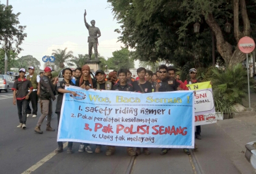 Di Bundaran Gladag dengan latar belakang patung Slamet Riyadi yang menjadi ikon kota Solo, biker bersama-sama mengucapkan ikrar keselamatan berkendara untuk semakin mengokohkan komitmen untuk berkontribusi mensosialisasikan safety riding bagi masyarakat.