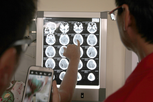 Setelah menjalani CT scan diketahui terdapat pengumpalan darah dalam kepala dan harus dilakukan tindakan operasi untuk menyelamatkan nyawanya. Operasi selama -/+ 4 jam ini telah berjalan lancar, begitu juga