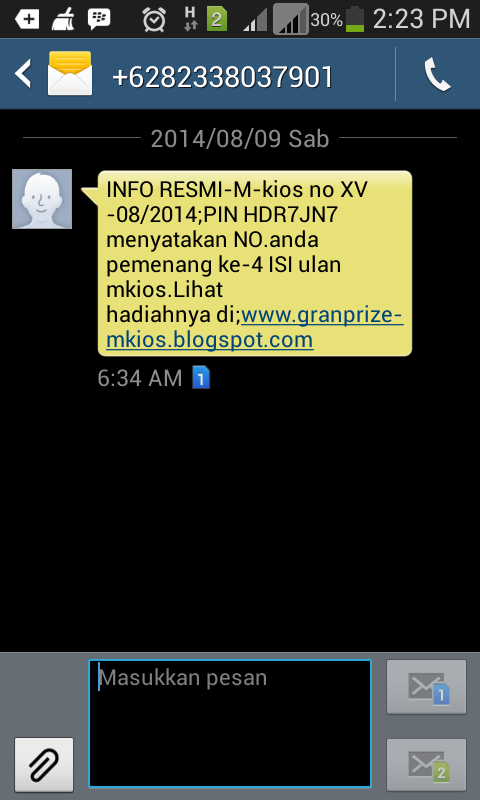 Namun seperti modus penipuan yang sudah-sudah, setelah ada nama pemenang, nomor PIN, mereka meminta imbalan sebesar Rp.2.750.000,- untuk hadiah mobil,ย Rp.1.250.000,- untuk hadiah motor, dan Rp. 500.000,- untuk hadiah uang tunai, wuediaaann!!!