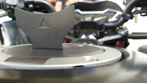 Contoh foto diatas, MR coba mode macro, difokuskan di penutup kunci tangki dengan background konsol spidometer Honda New CB150R SE.