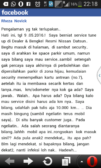 Hati ini, tgl 9 .05.2016.! Saya berniat service tune up di Dealer & Bengkel Resmi Nissan Datsun..
