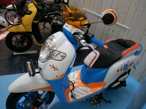Next…varian Playful yang dimodifikasi dengan warna-warna cerah yang mencolok dan kontras, sehingga menarik perhatian. Tidak terlalu banyak yang diubah, penambahan mini windscreen oranye menyatu dengan warna motor yang beraksen biru-putih-oranye