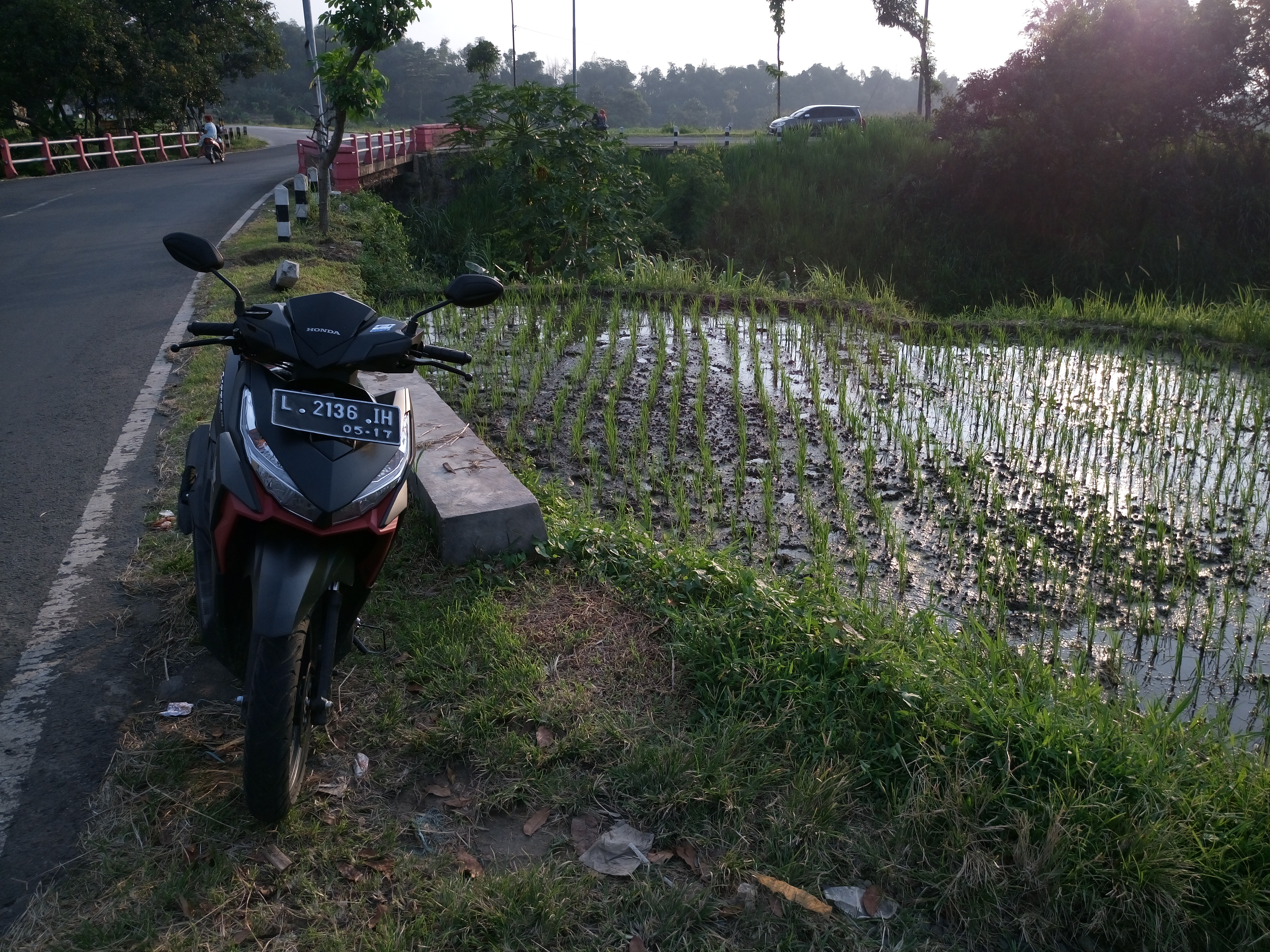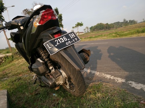 Start dari rumah sekitar pukul 11 siang, MR langsung isi bbm full tank – sekedar pingin tau seberapa irit Vario150 LE ini – lanjut menuju lokasi di Pohjejer via Krian – Mojosari – Pohjejer. Kondisi jalan yang amburadul, berlubang menghiasi rute Trosobo – Krian dilibas dengan cukup nyaman dengan ban size besar Vario150 LE. Selepas Krian, jalan sudah lumayan halus, saatnya geber gas!!