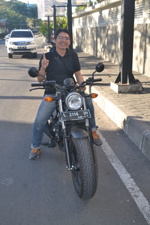 motorrio.com – Setelah sesi Press Conference selesai, sesi berikutnya adalah sesi yang paling ditunggu oleh MR dan rekan-rekan Jatimotoblog tiba: sesi test ride Honda CMX500 Rebel !! Jujur baru kali ini MR menjajal motor berkapasitas diatas 250cc, my dream come true, thank you MPM Honda!!
