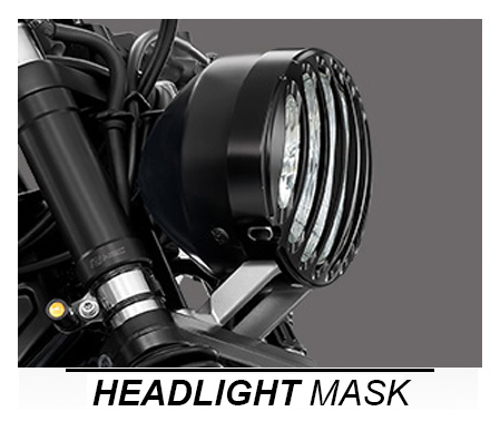 Untuk konsumen yang masih entry level dalam hal modifikasi, Honda menyediakan empat macam Genuine Accesories untuk CMX500 Rebel, diantaranya Headlight Mask, Engine Cover, Cover Alu Side, Side Upper.