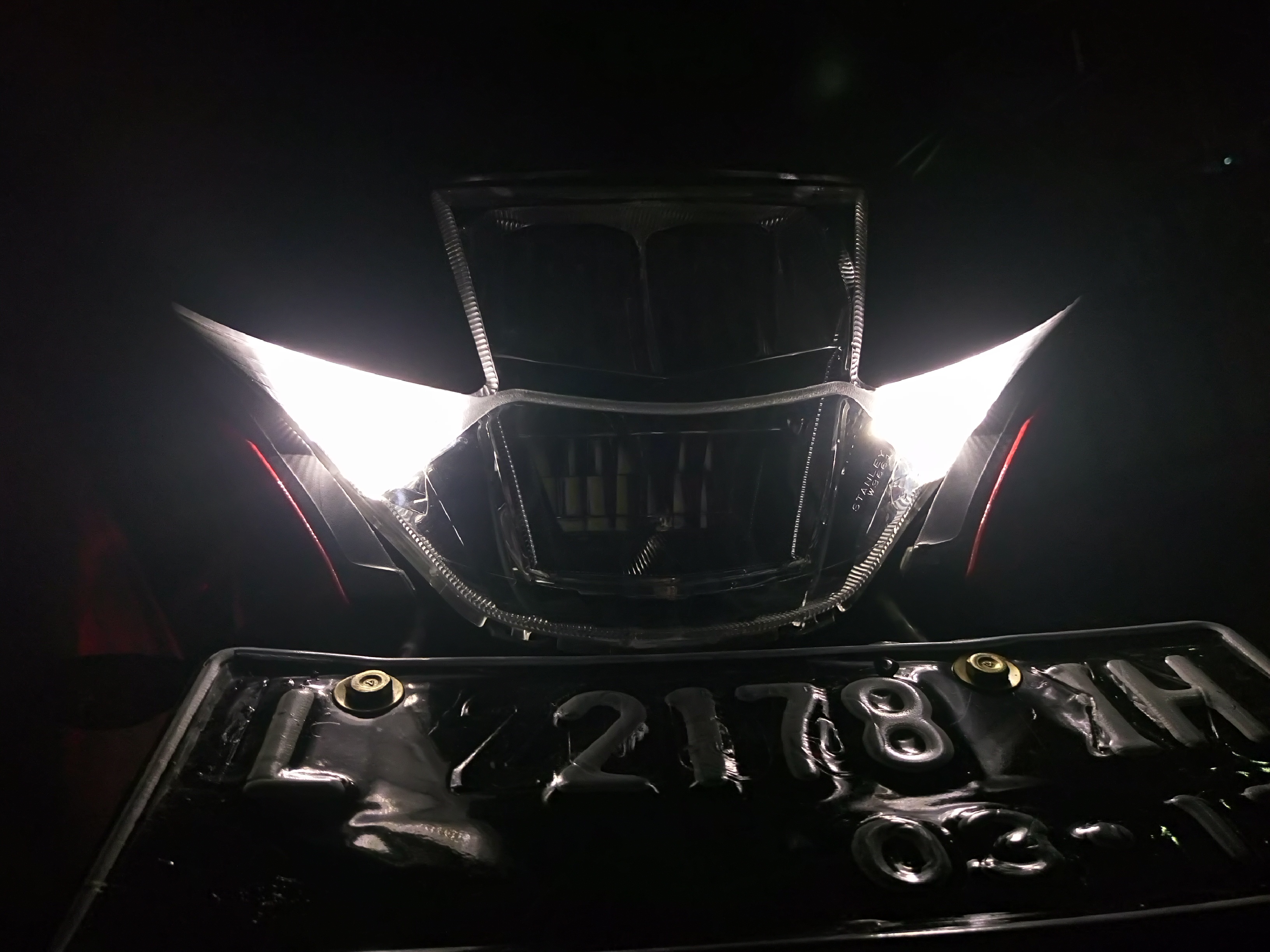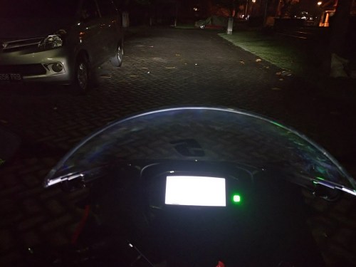 Headlamp LED tidak langsung menyala begitu kenop di posisi ON, tapi baru menyala saat mesin distarter. Cahaya putih LED dari headlamp amat membantu saat berkendara di malam hari, semuanya terlihat jelas!!