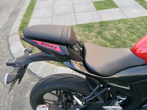 Tapi tetap posisi riding berasa sport, karena footstep dan posisi seat rider masih 100% sama dengan versi R, yang artinya buritan menungging ala sport, bukan seperti motor sport 150cc seperti Yamaha Vixion dan Honda CB150R yang buritannya tidak terlalu menungging. Ini bisa jadi kelebihan bagi Suzuki GSX-S150, tunggangan dengan feel sport touring, dan mudah untuk bermanuver tapi tampilan garang ala naked bike.