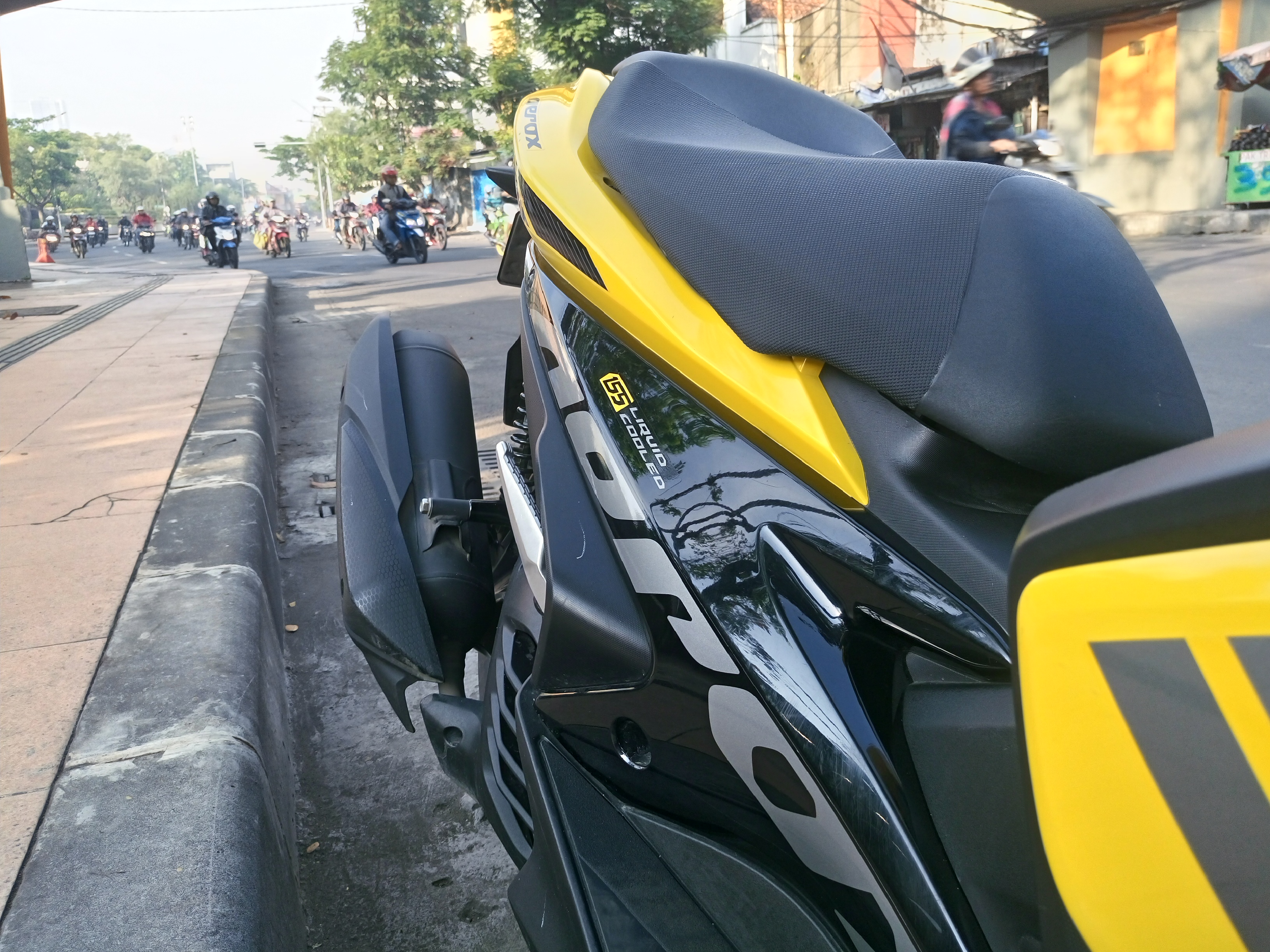 Aerox ane biasa dipake betot-betotan gas di jalanan Sumarecon – Aeon BSD (kadang kecepatan sampe 100) masih dapet 40km/l. Aerox memang kuenceng dan iritnya gak boong !!!