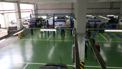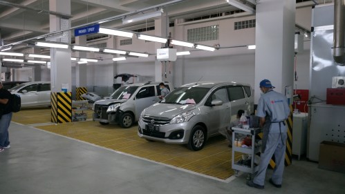 Dan saat melakukan showroom trip, MR juga berkesempatan melihat area servis mobil, serta bengkel Body Repair yang berada di lantai 2. Dan memang terbukti bahwa mobil yang diperbaiki tidak hanya dari merek Suzuki, karena ada Nissan Grand Livina, Daihatsu Xenia, Toyota Wish dan tentunya Suzuki Ertiga yang sedang dilakukan perbaikan.