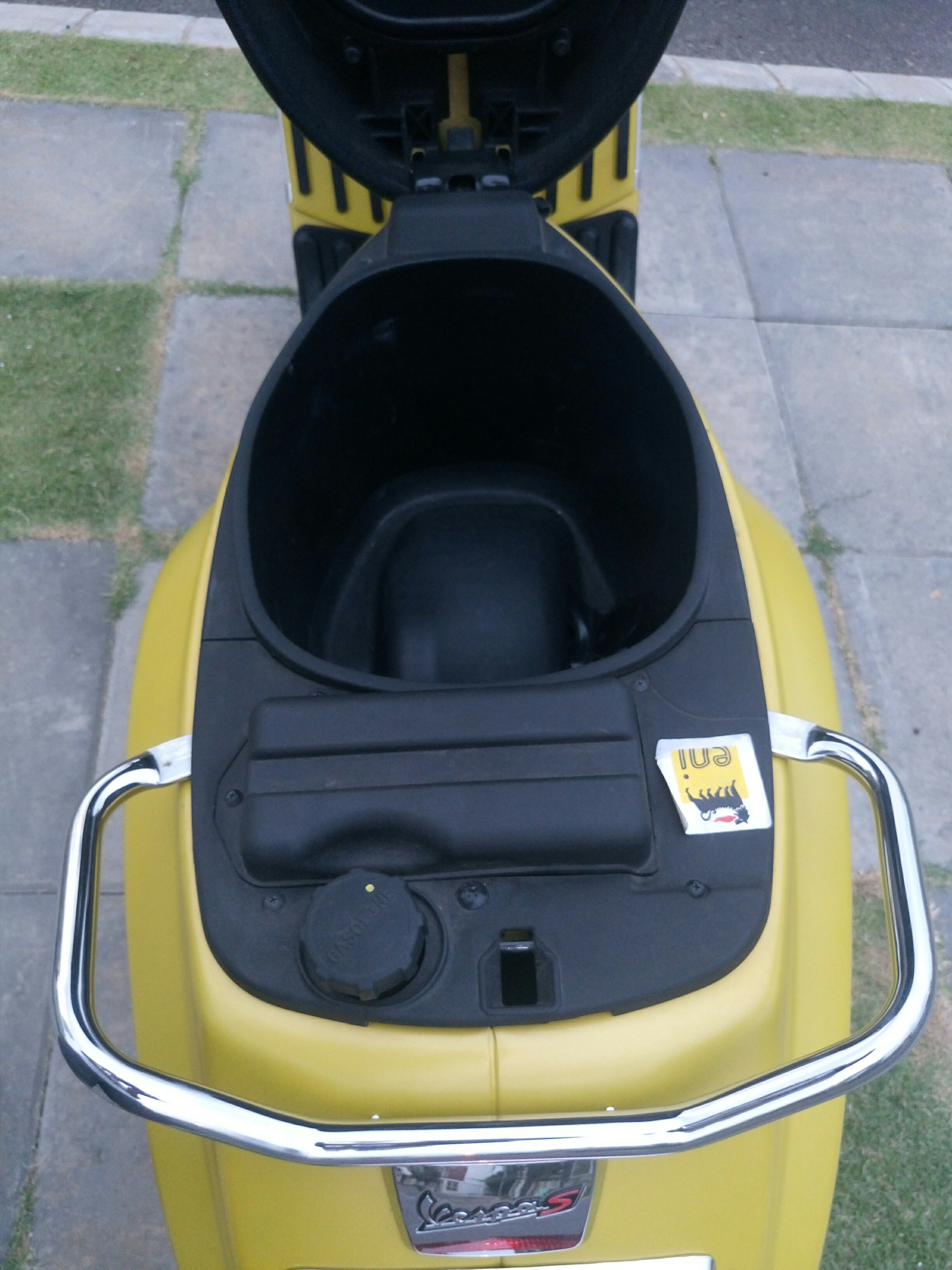Underseat storage dibawah jok cukup luas dan bisa melahap helm half face dengan mudah, cukuplah membawa barang belanjaan seabrek, dan gloves pocket di kanan kiri dek depan cukuplah untuk meletakkan barang kecil yang bisa diambil segera.