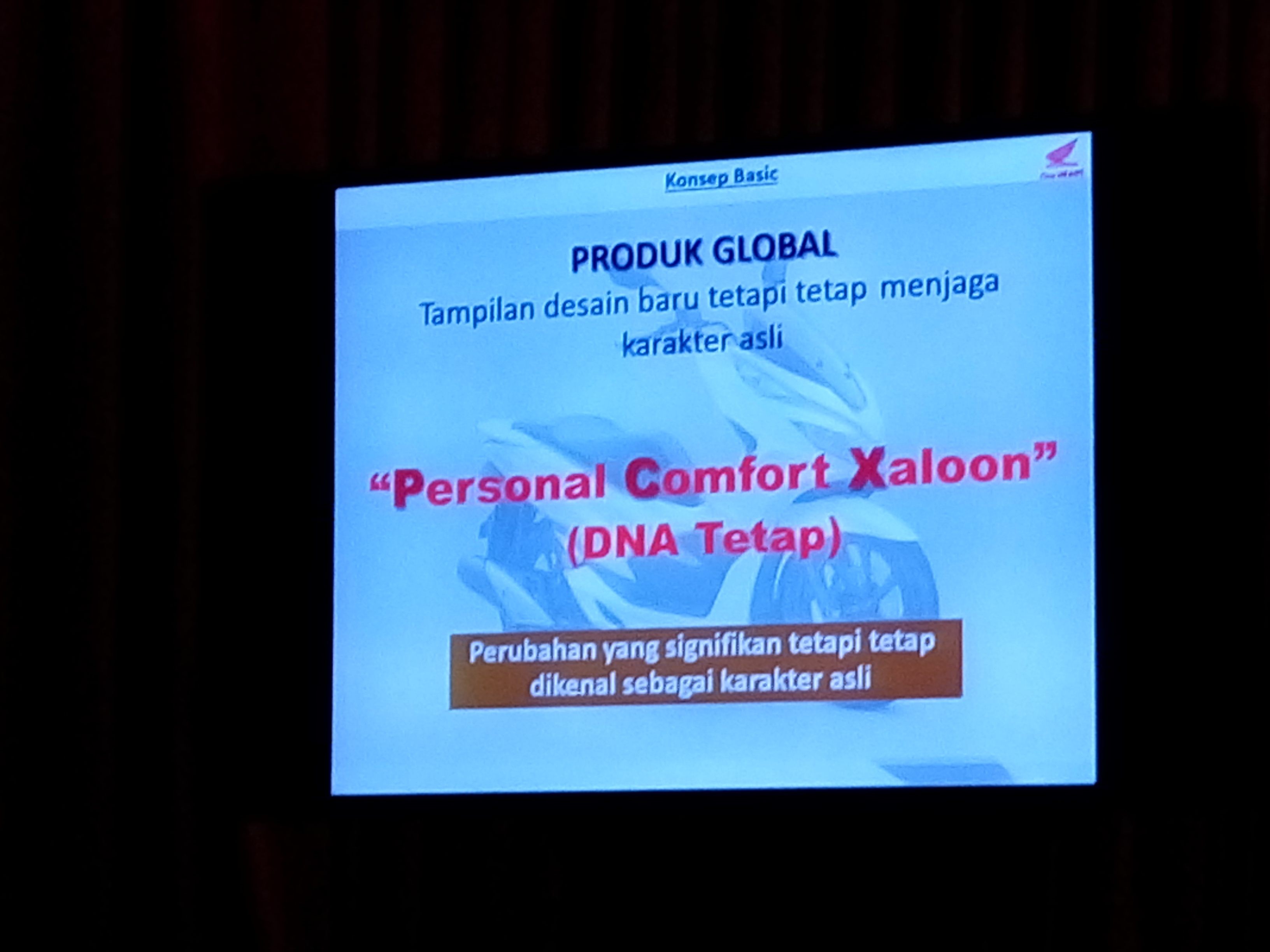 Dalam pengenalan Honda PCX 150 yang dibawakan oleh Suhari selaku Marcomm and Development Division Head PT MPM, MR baru tau kalau PCX memiliki akronim Personal Comfort Xaloon, yang artinya kurang lebih motor mewah yang memiliki kenyamanan bagi pemiliknya. Dan yang lebih keren lagi menurut MR adalah desain motor yang masih mengambil garis PCX sebelumnya, hanya dikembangkan menjadi lebih mewah dan berkelas!