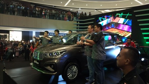 Suzuki All New Ertiga 2018 resmi mengaspal di Surabaya – motorrio.com – Resmi sudah Suzuki All New Ertiga 2018 mengaspal di Surabaya! Gacoan terbaru Suzuki ini dilaunching di Atrium Plaza Tunjungan 6 Surabaya pada Sabtu (12/05) pada pukul 17.15 sore tadi. Pengunjung yang semula tenang menanti dibukanya selubung hitam yang menyelimuti empat mobil Suzuki All New Ertiga, mendadak berubah riuh setelah selubung dibuka, rame pol!!