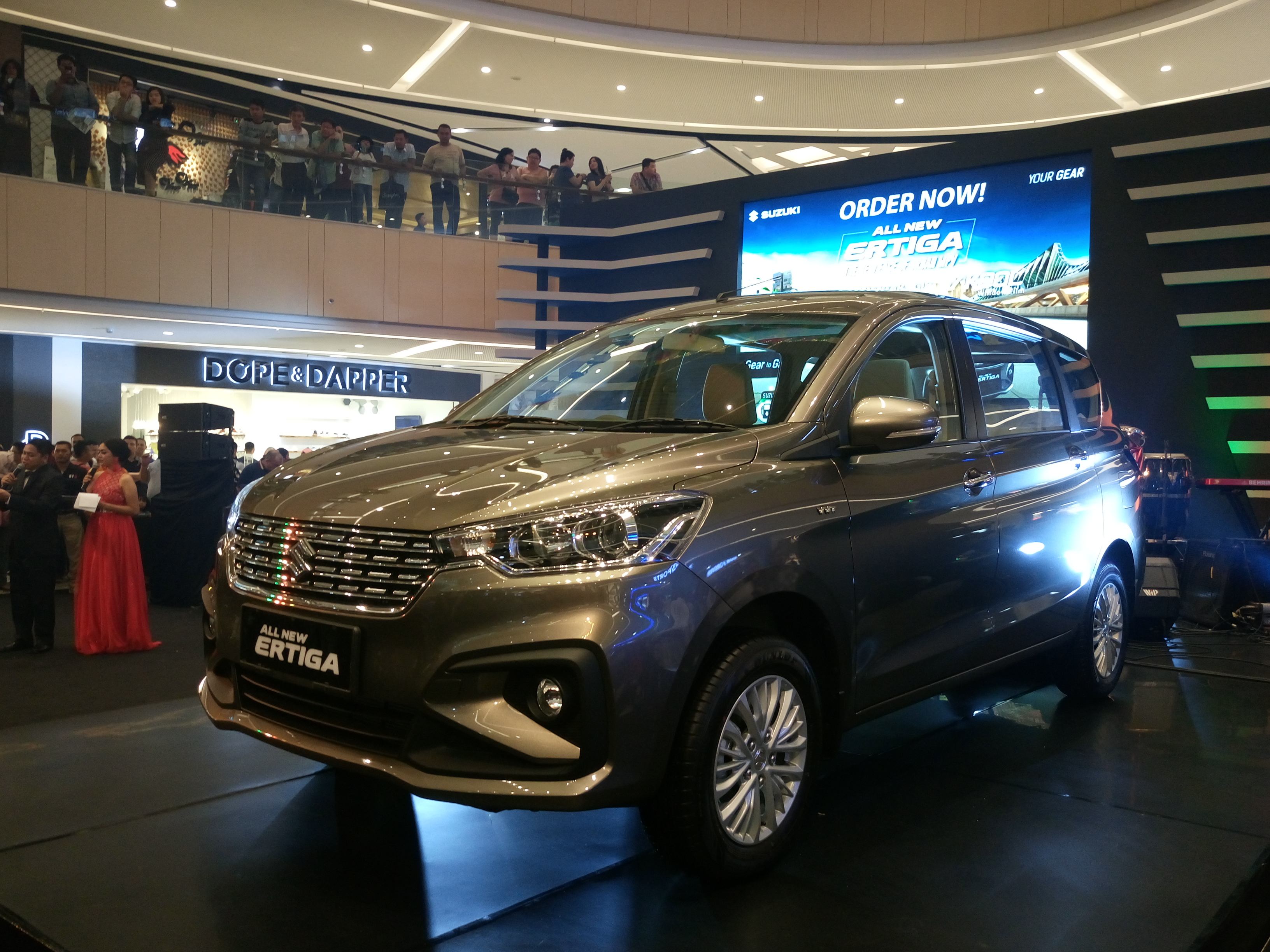 Suzuki All New Ertiga 2018 resmi mengaspal di Surabaya – motorrio.com – Resmi sudah Suzuki All New Ertiga 2018 mengaspal di Surabaya! Gacoan terbaru Suzuki ini dilaunching di Atrium Plaza Tunjungan 6 Surabaya pada Sabtu (12/05) pada pukul 17.15 sore tadi. Pengunjung yang semula tenang menanti dibukanya selubung hitam yang menyelimuti empat mobil Suzuki All New Ertiga, mendadak berubah riuh setelah selubung dibuka, rame pol!!