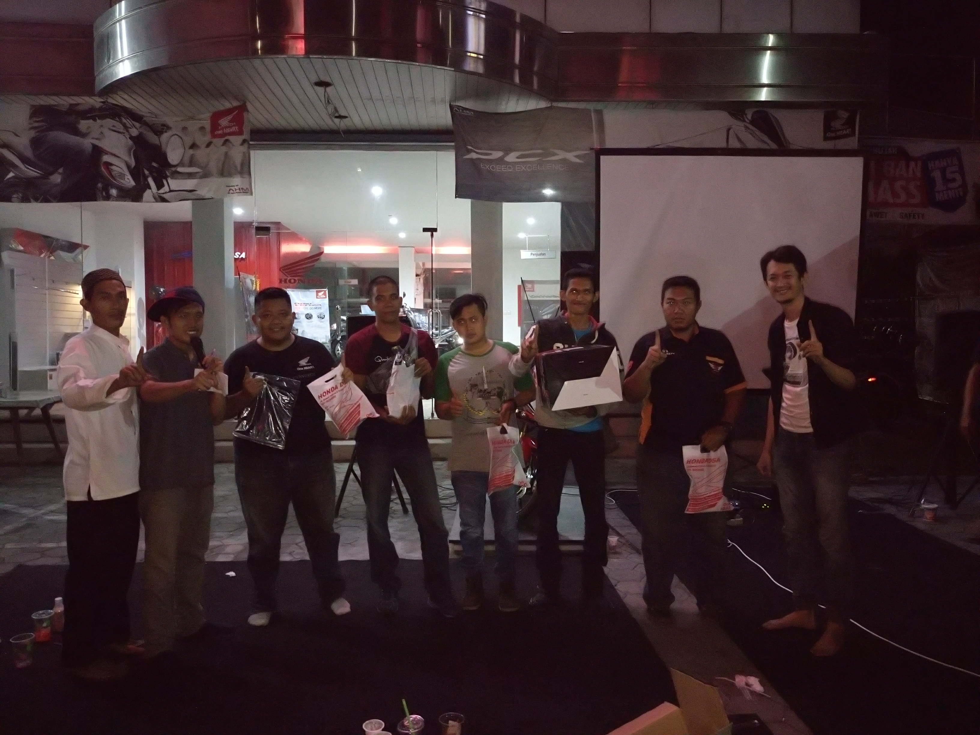 Ditambah dengan bagi-bagi doorprize yang lumayan banyak, dan doorprize utamanya helm Zeus fullface, keren yak?! FYI aja, Honda DSA ini terkenal aktif mengadakan acara bagi para konsumennya, mulai acara-acara keliling kampung buat jualan motor Honda, SunMoRi bareng komunitas CBR250RR yang diadakan tiap dua minggu sekali, SIM Keliling tiap Sabtu di halaman depan dealer, sampai acara-acara Nobar kaya gini.