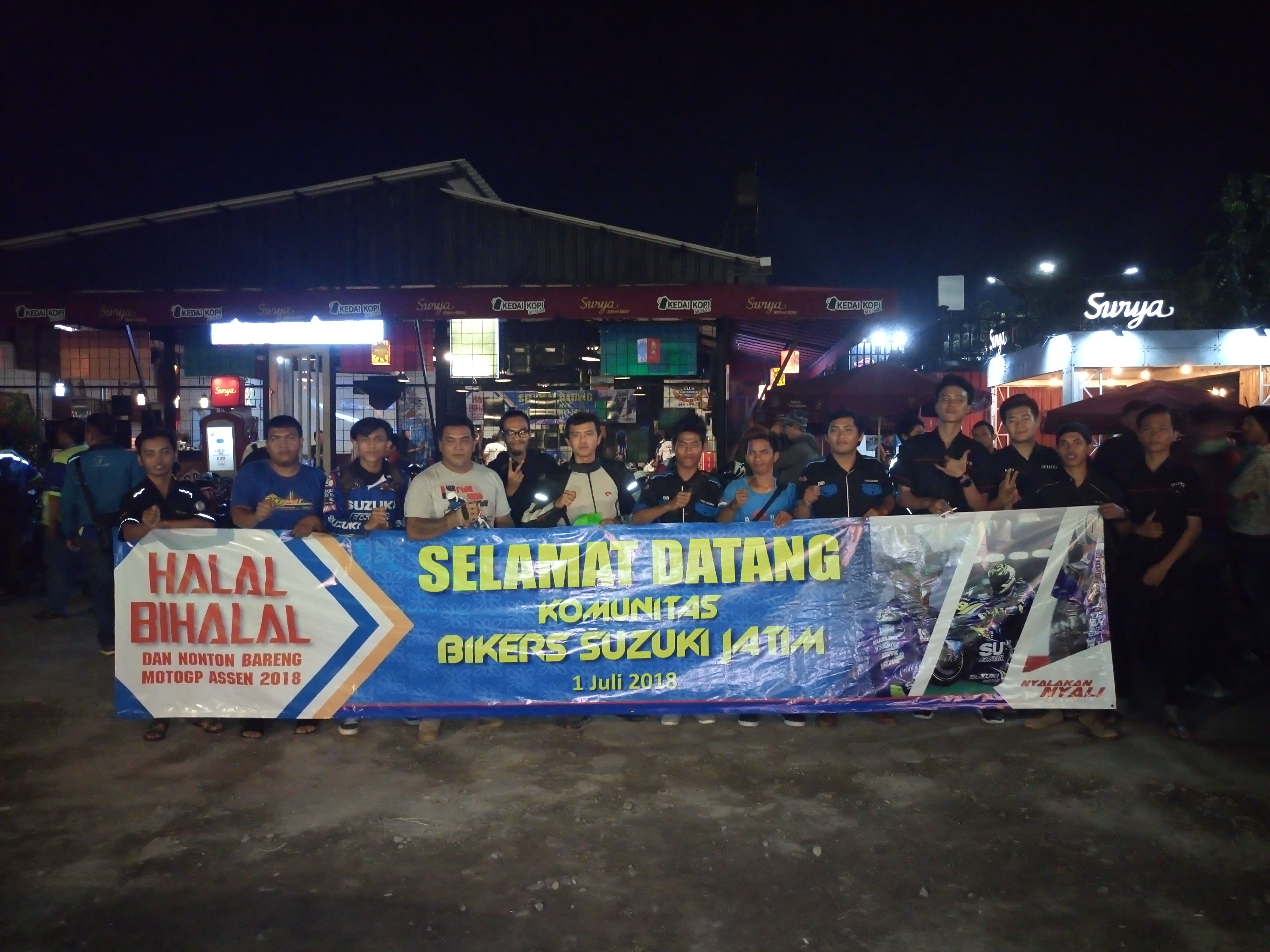 Halal bihalal bin Nobar MotoGP Assen 2018 bersama Komunitas Bikers Suzuki Jatim – motorrio.com – Masih dalam rangka Hari Raya Idul Fitri, Suzuki mengadakan acara halal bihalal bersama Komunitas Bikers Suzuki Jatim, di Kedai Kopi Medan Sidoarjo. Lokasi Kedai Kopi Medan amat mendukung buat acara Suzuki kali ini, selain parkir luas, Kedai Kopi Medan berhiaskan part motor seperti shock depan, tangki, roda de el el, keren bingitssss!