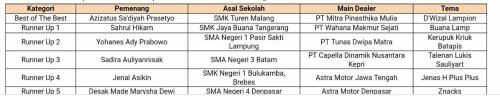 Seleksi siswa berjiwa enterpreuner pada AHMBS 2018 ini menetapkan para pemenang dengan hadiah utama 1 unit Honda BeAt untuk Best of the Best Student AHMBS 2018. Hadiah ini diharapkan dapat mendukung aktivitas kesehariannya dalam mewujudkan mimpi. Selain itu, semua finalis yang menempati posisi enam besar mendapatkan hadiah masing-masing berupa gadget untuk mendukung operasional bisnisnya.