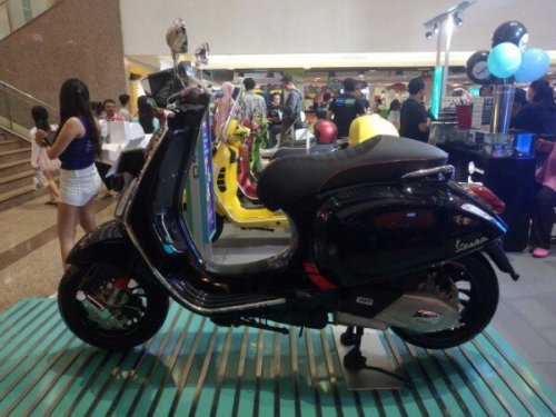 Vespa Limited Edition Sprint Carbon – motorrio.com – Minggu (02/09) lalu saat MR nge-mall di Tunjungan Plaza 1, pandangan MR langsung tertuju ke lokasi pameran mini yang ada dilantai dasar, dimana sekitar 40% nya dikuasai oleh Vespa, sub brand dari Piaggio. Seluruh tipe yang dipasarkan di Indonesia ada disitu, namun ada dua tipe yang memang meenonjol dan tampak beda dari tipe lainnya, Vespa Sprint Carbon dan Primavera Yacht Club.
