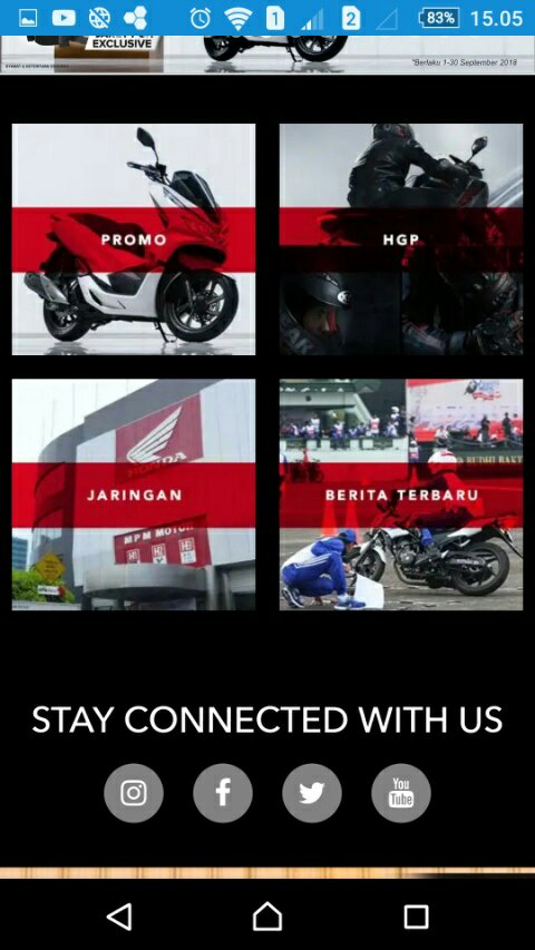 Di baris kedua, ada empat konten yang berisi Promo, HGP (Honda Genuine Parts), Jaringan (Dealer) dan Berita terbaru yang sedang dilakukan oleh MPM Honda beserta jaringannya. Silakan klik saja dan nanti akan tampil beragam info sesuai konten yang kita inginkan.