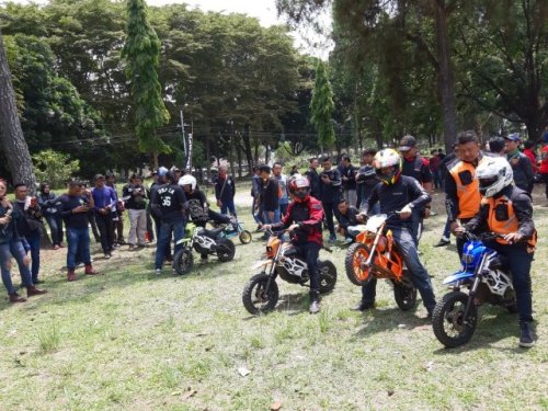 Selain acara kumpul-kumpul dan makan bersama, lomba selfie dan wefie plus lomba seru-seruan minimoto antar komunitas juga berlangsung seru, gimana ga seru, wong biasa pakai motor beneran, ini disuruh lomba pakai motor mini, electric bike pisan!! Jadinya ya kagok, malah yang lucu ada yang saking jengkelnya nge gas ga bisa kencang motornya, akhirnya dikayuh pakai kaki 😂