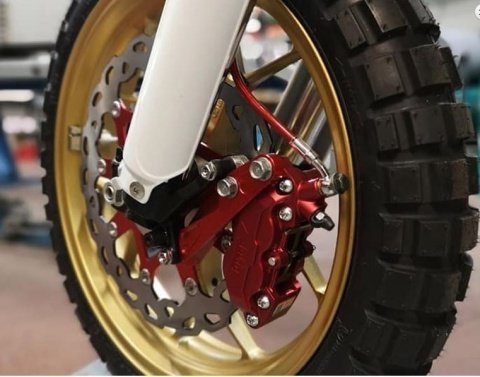 Ban depan belakang Continental TKC 80 plus grafis Africa Twin tricolore dan mesin 145 horsepower menjadikannya monster scrambler!!
