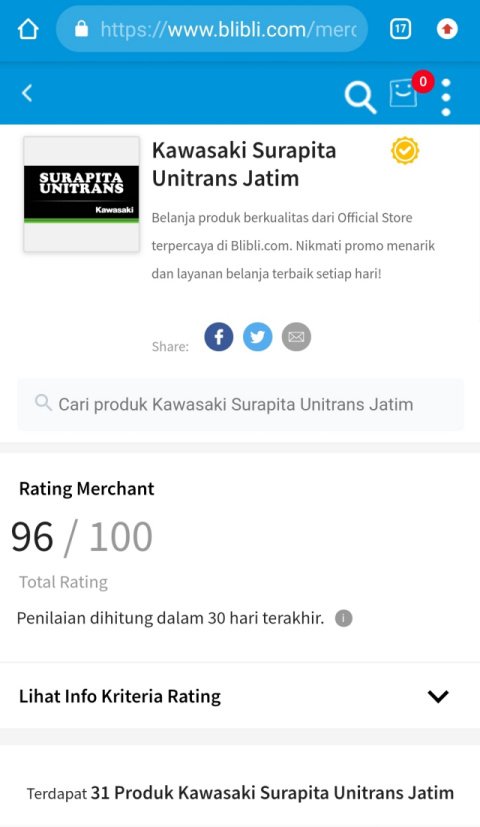 Era perkembangan E-commerce yang semakin pesat pada masyarakat Indonesia dan Jawa Timur pada khususnya, menjadi tantangan tersendiri untuk memberikan jawaban kepada konsumen yang ingin memiliki produk Kawasaki dengan fasilitas bertransaksi online E-Commerce. Peluang ini ditangkap oleh PT. Surapita Unitrans bekerjasama dengan Blibli.com yang sekaligus merilis official store “Kawasaki Surapita Unitrans Jatim” di Bibli.com untuk memberikan kemudahan pelayanan