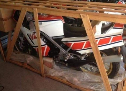 Berbekal mesin 2 stroke 500cc konfigurasi V4, Yamaha RD500 hanya diproduksi dalam masa yang cukup singkat, dua tahun saja, dari 1984 – 1986. Nah…motor yang diunboxing diatas, “ditemukan” di gudang dealer Yamaha Australia, setelah terlupakan di gudang selama 30 tahun!!