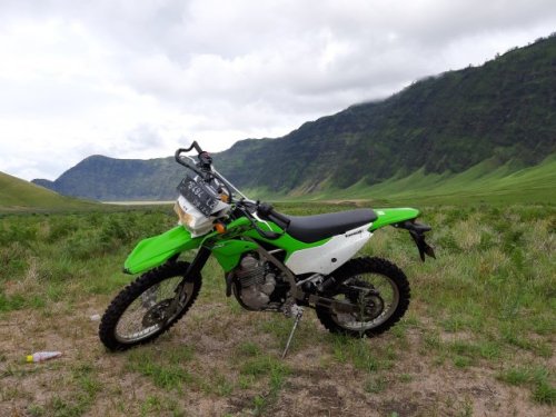 Dari perjalanan selama sekitar 5 jam sampai di lautan pasir Bromo, KLX150BF terasa lebih nyaman dibanding CRF150L saat dipakai di trek bebatuan dan pasir, dimana suspensi depan sedikit lebih empuk, walaupun kalau benar-benar nyaman, MR pilih yang suspensi teleskopik seperti yang ada di KLX150. Saat di jalan berpasir pun masih terbilang nurut, apalagi ban paculnya masih cukup tebal, berbeda dengan saat MR pakai motor sewaan, yang bannya sudah mulai menipis, grip ke tanah serasa hilang.