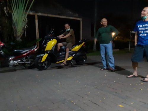 Selama perjalanan sekitar 30 km dari kantor di Perak sampai ke rumah di Sidoarjo, MR merasa matic gambot ini anteng banget, mau diajak ngebut ok, ditunjang knalpot yang sudah diganti muffler Akrapovic asli, yang menurut empunya dibeli kisaran 12 jutaan, dan jelas bukan abal-abal! Jajal ditarik gasnya, ngga terasa ngejambak banget tapi saat lihat speedo, eh….udah 130 kph aja nih, wes….ngga berani lebih banter deh, asli kalau dibejek lagi pasti bisa lebih dari 140 kph!
