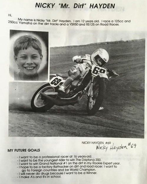 Nicky Hayden – motorrio.com – The Power of Dreams, semboyan dari Soichiro Honda ini memang patut diterapkan dalam kehidupan kita, karena tanpa mimpi dan tujuan, hidup tak akan jelas arahnya. Nah…Nicky Hayden yang meninggal 2017 lalu ternyata sudah memiliki mimpi-mimpi yang ingin diwujudkan dan ditulis sejak umur 12 tahun diawal karir balapnya.