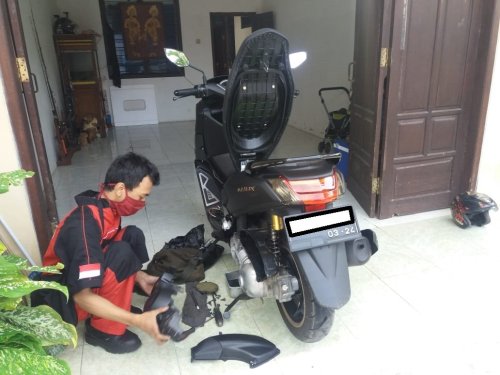 Istimewanya lagi, sepeda motor yang sudah selesai di service tadi akan disemprot disinfektan secara gratis, maka dijamin aman dan tidak akan membawa virus COVID-19 kepada konsumen.