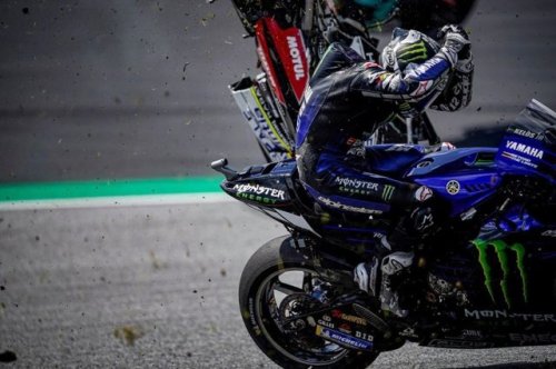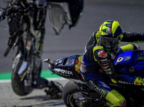 Akibatnya Morbidelli yang kaget tidak bisa mengerem dan langsung menghantam Ducati Zarco dan langsung hancur berantakan. Untungnya Viñales dan Rossi yang berada tepat dibelakangnya tidak terkena motor Morbidelli dan Zarco yang melayang tepat di atas Viñales dan didepan Rossi!! Ngueriihh!!