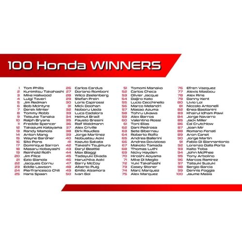 Di daftar tampak nama-nama rider ternama yang pernah membela Honda maupun yang masih eksis saat ini. Deretan