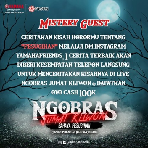 Ngobras horor – motorrio.com – Di minggu ketiga bulan Desember mendekati akhir tahun Ngobras bareng Yamaha Friends bakal live dengan tema horor yang bisa jadi peringatan buat yang pingin cepet kaya pakai jalan pintas yaitu “Bahaya Pesugihan”!!
