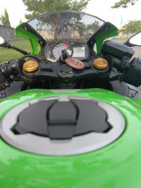 Lanjut naik ke atas jok yang cukup bersahabat, terasa seperti naik motor gede, dengan area tangki yang lebih lebar tapi tak setinggi tangki Ninja 250 Fi gen awal, jadi lebih enak buat ducking dibalik windshieldnya. Mesin terasa halus, beda dengan Ninja 250 Fi, 2 silinder, yang kalau kita naik diatasnya dalam kondisi statis, motor terasa goyang halus kiri-kanan, mungkin karena piston yang naik bergantian ya, embuhlah!