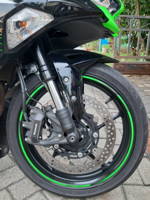 Shock depan dan belakang nyaman meredam goncangan aspal tak rata, jadi MR bisa fokus ke jalan tanpa takut bokong sakit semua karena shock belakang yang keras, jadinya nyaman. Plus rem depan, kata Cak Daniel diambil dari kakaknya ZX636, so pasti pakem banget!