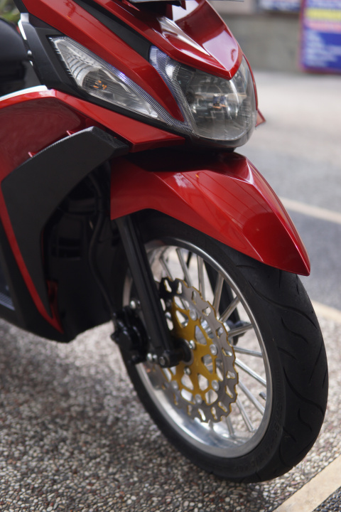 “Ada beberapa part yang akan diubah dan pastinya diganti agar motor terlihat lebih ciamik. Contohnya velg akan diubah, trus knalpot juga akan diganti dengan black dope, dan beberapa hal lainnya,” Ungkap Bramandra, Host program Fix & Ride.