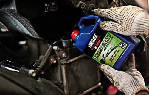 Langkah kedua, gunakan Yamaha coolant pada sistem pendingin radiator. Fungsi cairan ini adalah untuk menjaga agar suhu mesin kendaraan tetap stabil. Minimal ganti cairan coolant setahun sekali, jika tidak diganti secara berkala dapat mengganggu kinerja komponen lainnya.