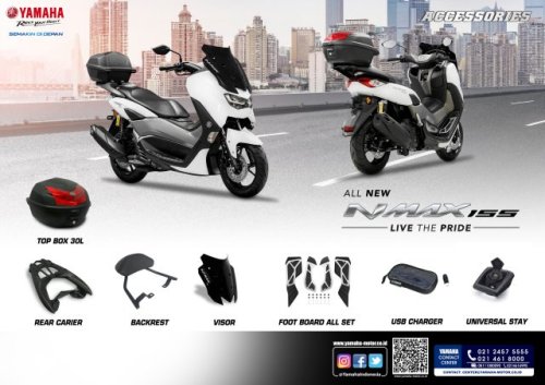 Aksesoris resmi Yamaha All New NMax – motorrio.com – Yamaha All New NMax selain enak dibuat harian, juga mantap diajak turing jarak jauh. Walaupun sudah terbilang mumpuni untuk turing jarak jauh dalam kondisi standar, namun tetap saja ada rider yang ingin lebih, dalam hal akomodasi maupun kelengkapan turing. Paling umum menambahkan top box, untuk menambah kapasitas bagasi peralatan selama perjalanan.