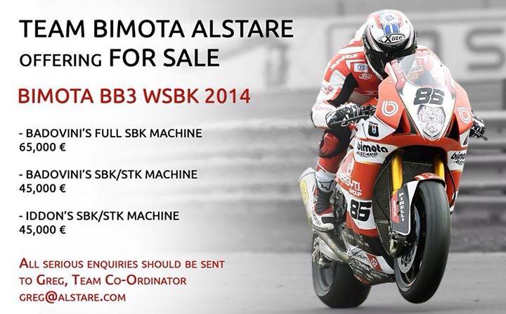 Mazbro n mbaksis, walaupun race WSBK ngga ditayangkan di Indonesia tapi tetep aja seru lho!! Karena memang yang dipakai di seluruh race-nya adalah motor spek full racing yang ngga kalah kencang dengan motor MotoGP. Nah….buat para bikers yang pingin punya motor yang dipakai di WSBK seri 2014 kemarin, ini ada kesempatan dari Team Bimota Alstre yang mau melego motor bekas pakai timnya.