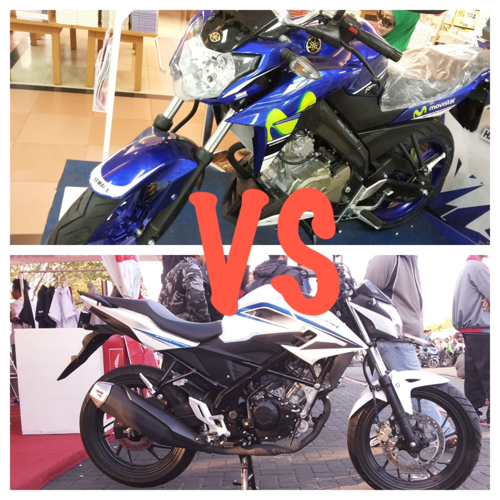 Wuih bener-bener tarung sampai mati nih kayanya!!! Bayangin, bedanya cuman gomban alias 50 ribu doang mazbro!!! Keduanya sama-sama punya kelebihan dan kekurangan masing-masing. Yamaha unggul di desain tutup tangki sporty, ga jenong kaya Honda, ukuran ban lebih besar. Sedang Honda unggul di mesin yang turunan CBR150R dengan DOHC 4 valve, rangka truss frame. Walopun sebenarnya power outputnya mirip-mirip, di kisaran 17ps, so kalo diadu (mungkin) ga beda jauh.