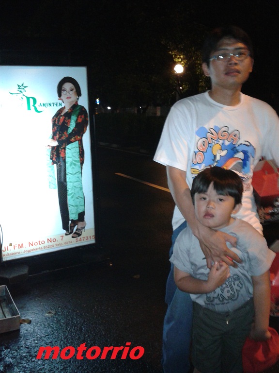 Dari 3citi3s baru MR tau kalo pemiliknya ternyata sama dengan pemilik Batik Mirota yaitu Mas Hamzah, yang punya karakter alter ego dengan nama Raminten yang tayang di tv lokal (sayang ga ada tayangan tv lokal di hotel MR nginep). Back to story, kemarin malam MR n family naik taksi dari Inna Garuda ke tkp cuman sekitar 5 menit dan tarif argo cuman 7000 rupiah! Aslinya deket sih, cuman karena bawa anak2 ya mending pake taksi. Masuk ke lokasi udah disambut ama suasana Jawa, suara gamelan yang menenangkan hati, suasana yang redup plus lampu warna-warni dan pelayan yang berseragam tradisional-modern, yang cowok atasan pake kaos warna putih, yang cewek atasan kemben, bawahnya pake kain batik. Ada juga sentuhan modernnya, masing2 pelayannya dibekali Handie Talkie alias HT untuk memperlancar pelayanan. Next, MR ditanyain, pilih yang duduk di kursi ato lesehan, MR pilih lesehan aja biar santai, coz MR bawa istri ama anak2. Ok disuruh nunggu sebentar, coz masih belum ada tempat kosong. 5 menit berlalu, akhirnya pelayannya mempersilakan masuk.