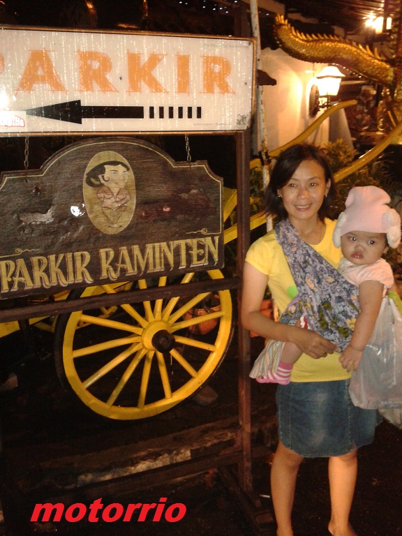 Kok dibilang antik sih, tambah penasaran!! Searching Google dan dapet link ke sitenya “The House of Raminten” yang mendefinisikan kafenya : Kami adalah kafe tradisional dengan unsur– unsur modern dengan menampilkan keunikan dalam penampilan, penyuguhan peralatan makan dan minum dan suasana Jawa yang nyaman.Temukan suasana yang berbeda sesuai dengan semboyan Kami “Unik, Antik dan Elegan” di sini. The House Of Raminten buka 24 jam dengan nonstop music gamelan. Selain music gamelan ada suguhan lain berupa tontonan film film dari TV Kabel. Dan bila malam tiba akan diterangi oleh gemerlap lampu yang berwarna-warni. Selain itu pengunjung wisata kuliner juga bisa berfoto di depan Kereta Kencana, karena dipintu masuk ada 3 Kereta kencana yang sangat indah. Banyak keunikan yang akan Anda dapatkan di The House Of Raminten, terutama menu dari makanan dan minumannya. Hmmmm…..