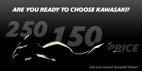 Kawasaki Ninja 250 SL bakal seharga sport 150cc – motorrio.com – Kawasaki lagi bikin para bikers geger nih, karena merilis teaser siluet Kawasaki Ninja 250 SL dengan tulisan Are You Ready to Choose Kawasaki dan tulisan gede 250 150 price dibawahnya.