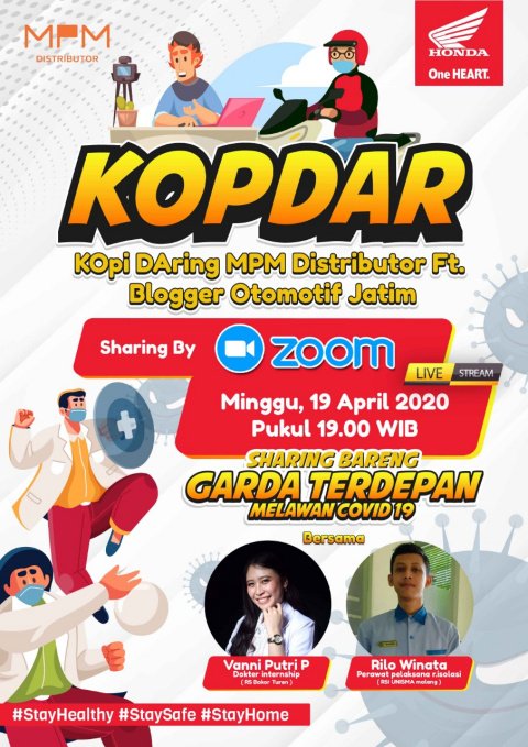 Kopdar Covid 19 – motorrio.com – Di tengah situasi tak menentu akibat Covid 19 seperti saat ini, bertemu secara fisik rekan-rekan MPM Honda dan blogger Jatimotoblog agak sulit. Aturan pemerintah untuk jaga jarak dan mengurangi pertemuan dalam kelompok, bakalan sulit dipatuhi jika dilakukan secara onsite. Satu-satunya solusi untuk bertemu banyak orang dalam satu waktu adalah via aplikasi meeting online seperti Zoom, yang dihelat MPM Honda bersama blogger dan vlogger pada Minggu (19/04) lalu.