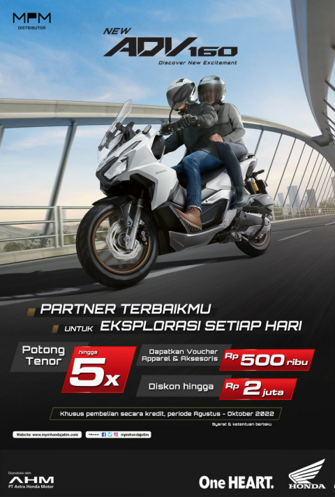 Honda ADV 160 – motorrio.com – Skuter matik besar penjelajah terbaik untuk eksplorasi sehari hari, New Honda ADV 160 telah diperkenalkan ke masyarakat Jawa Timur pada bulan Juli 2022 lalu. Tak hanya punya wajah baru yang semakin tangguh, sepeda motor yang sukses membuka segmen baru di kelas skutik premium ini, kini juga lebih bertenaga dengan mesin baru, semakin nyaman dengan jok lebih rendah dipadukan ground clearance tinggi, serta semakin canggih berkat fitur high tech seperti HSTC (Honda Selectable Torque Control).