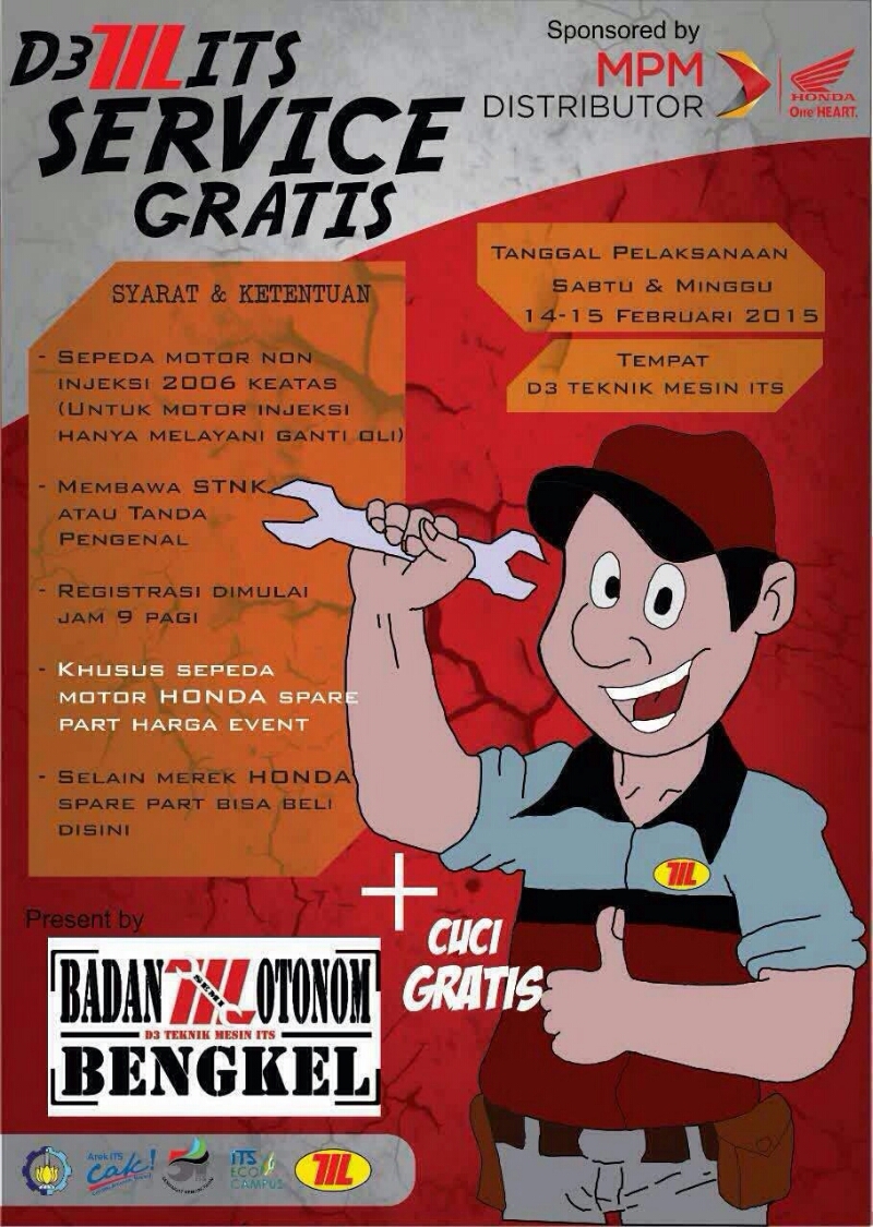 Servis Gratis Tekiro – ITS – motorrio.com – Tak terasa Event tahunan Servis Gratis kolaborasi PT Altama Surya Anugerah yang merupakan pemegang merek Tekiro dengan Institut Teknologi Sepuluh Nopember (ITS) sudah memasuki tahun ke delapan. Tidak hanya sekedar memberikan servis gratis, namun juga sebagai upaya meningkatkan kesadaran akan pentingnya perawatan kendaraan serta memberikan bekal keterampilan otomotif bagi masyarakat. Bedanya, di tahun 2025 ada program Pelatihan Dasar Otomotif selain Servis Gratis kendaraan yang terbuka untuk umum.