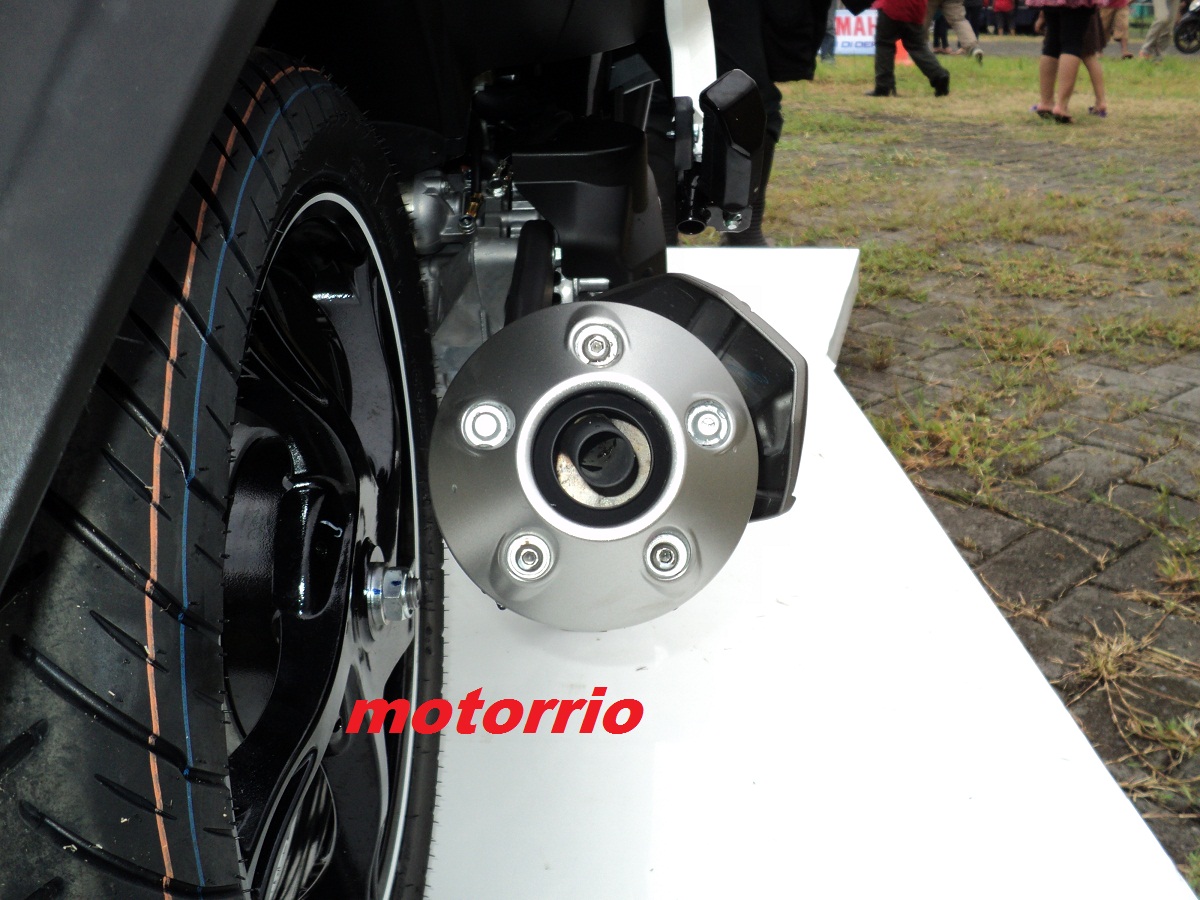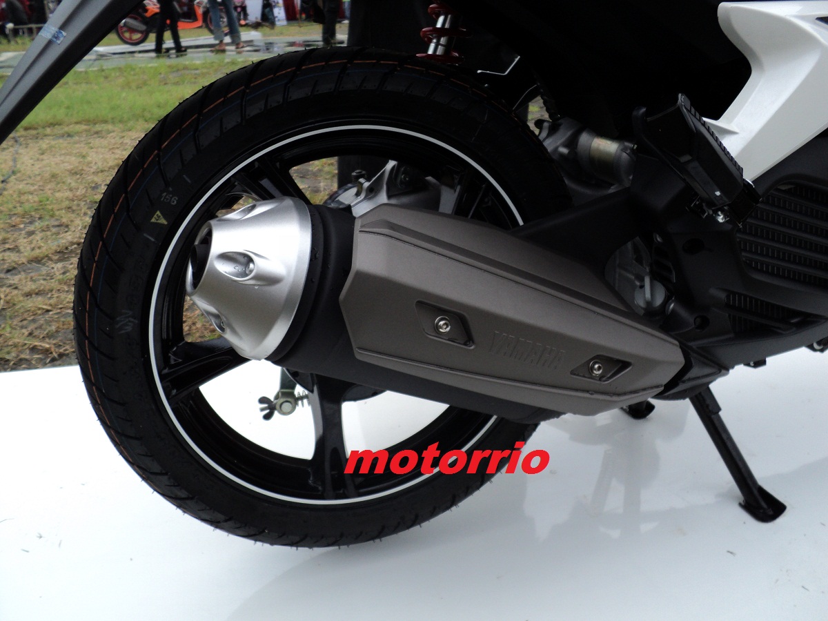Selebihnya bodi dari dek depan sampai belakang nyaris tidak ada perubahan alias sama plek, kecuali lampu belakang yang diganti LED dan cover knalpot yang lebih sporty, dengan desain dari seri skutik moge Yamaha, T-Max.